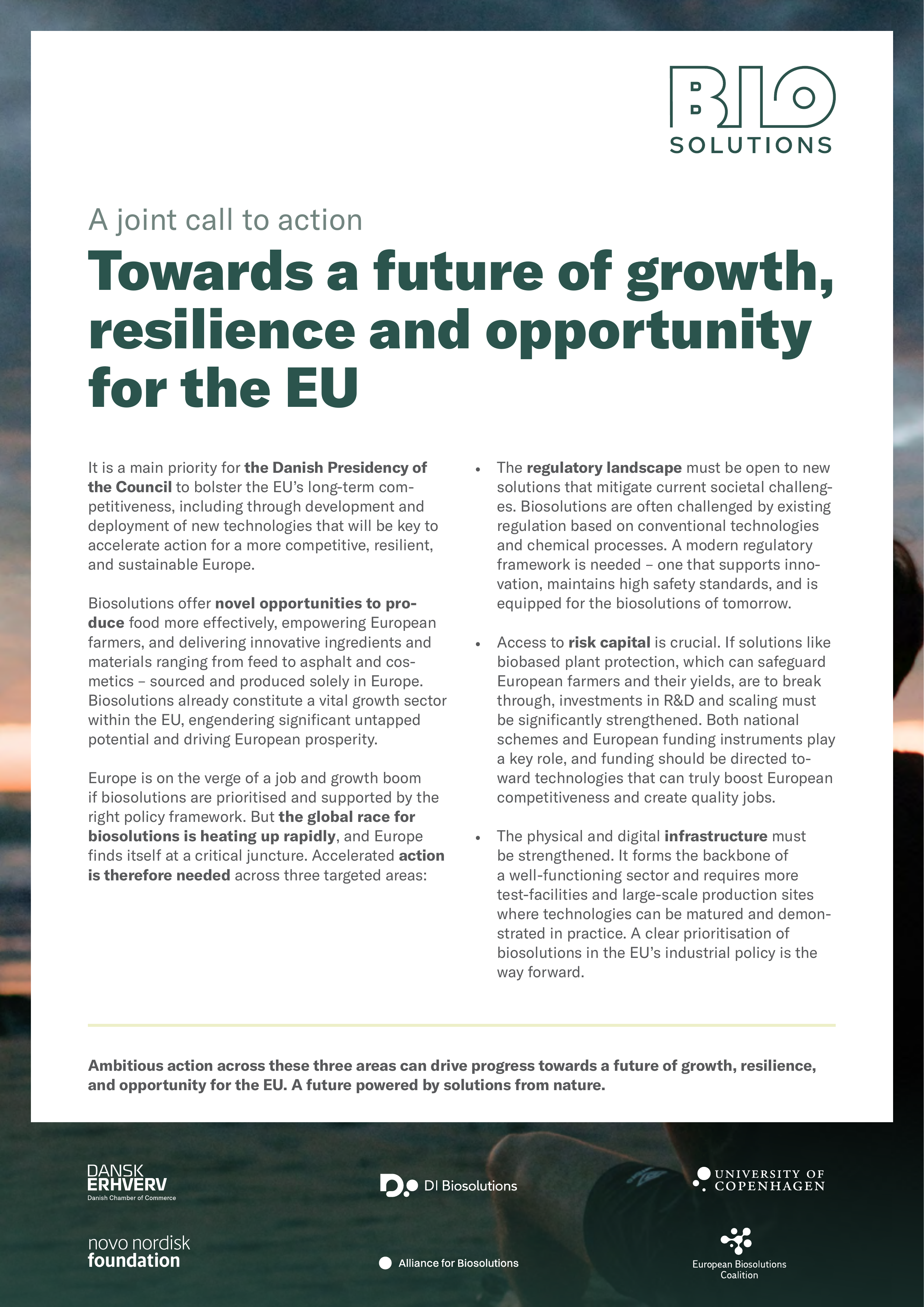 We have successfully increased political attention on the potential of biosolutions, and our efforts have led to commitments from the Danish government to develop a national strategy and regulatory framework for biosolutions, positioning Denmark as a leader in sustainable innovation.